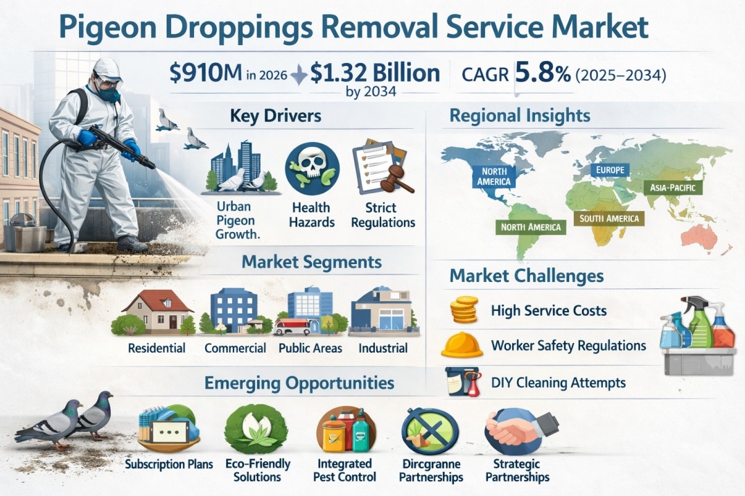 Pigeon Droppings Removal Service Market Growth Outlook 2025–2034 with 5.8% CAGR Fueled by Regulatory Compliance Needs